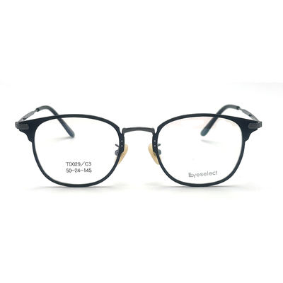 | टाइटेनियम ऑप्टिकल फ्रेम | वैक्यूम लेपित टाइटेनियम चश्मा, वर्ग आंखों के आकार, प्रकाश और पतला, मंदिर लंबाई 145 मिमी, फ्रेम आकार 50-24-145, यूनिसेक्स। |
